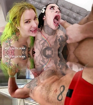 HORNY BITCH GAGS ON A HUGE Rod AS ANOTHER Smashes HER CUNT