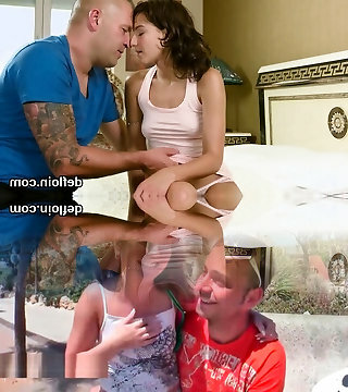 My virgin daughter sucks a dick for the first time, threesome with my wife double cum on her beautiful virginal face