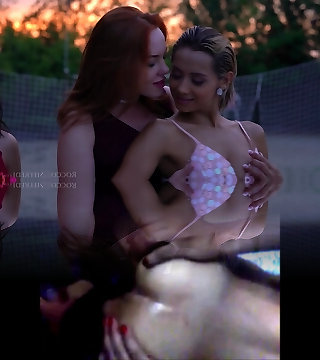 Beautiful chick Brooke jerking with jaw-dropping Keisha in a small pool