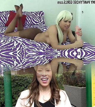 Titless Japanese hoe in sexy pantyhose gets her kitty licked greedily