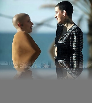 Tatted lesbians Destiny Porter and Shay Fox lick each