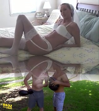 Hot slut young step-mom with sexy bride sundress cuckold with her step-son