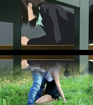 Lusty hentai schoolgirl blowing huge manmeat on knees