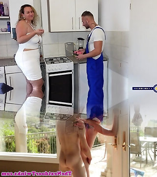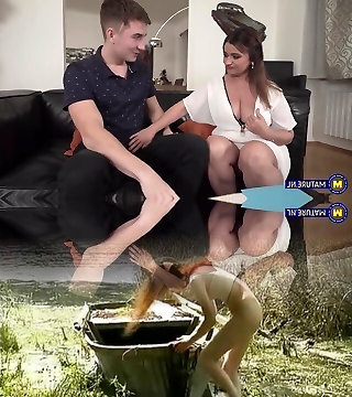 Step Mom caught Step Son with beefstick while cleaning and helped him cum quickly