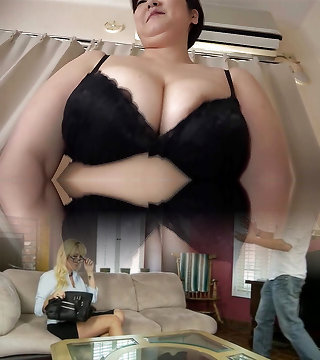 Obese huge boobs brunette