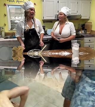 Cute brown-haired Sofi Ryan attacks a guy for a penetrate in a kitchen