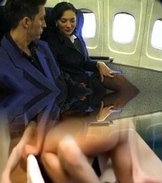 Stewardess fucks camera operator on plane