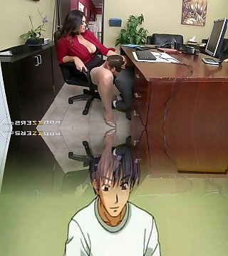 Curvy boss with big knockers makes a guy eat and poke her pussy