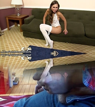 Cock teasing on her floor while wearing sexy tight lingerie
