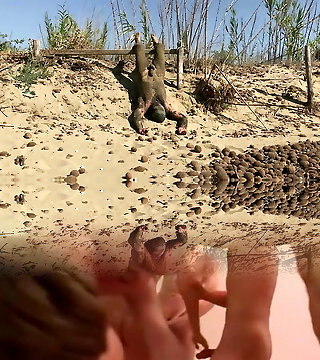 A ultra-kinky German woman sitting on her slaves's face at the beach