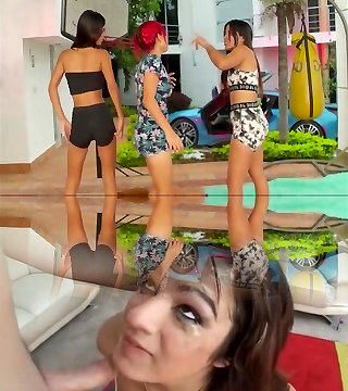 4some pool sex with bodacious Latina chicks Kesha Ortega and Sheila Ortega