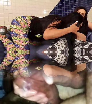 Once Caught On Hotwife, a Brunette Tranny Has To Please Two Lusty Plump Buxom Redheads Wit Her Dick