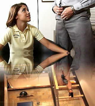 Beautiful student with diminutive tits Jessica hooks up with perverted old teacher